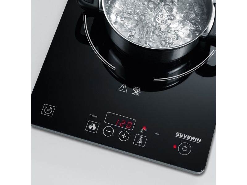 The SEVERIN KP 1071 induction hot plate combines functionality and convenience in one compact device. With a powerful 2 kW power consumption and a digital display, it delivers efficient cooking results. The touch-sensitive control type allows for intuitive operation, while the timer setting of up to 180 minutes ensures precision in your cooking. Automatic pot detection provides an added layer of convenience by recognizing compatible cookware, enhancing safety during use. Safety is a primary feature of this induction hot plate, equipped with an auto shut-off mechanism and overheat protection to minimize the risk of accidents. The 210 mm diameter plate is suitable for a variety of cooking needs, making it a versatile addition to any kitchen. Experience ease of cooking with reliable performance and innovative safety features with the SEVERIN KP 1071.