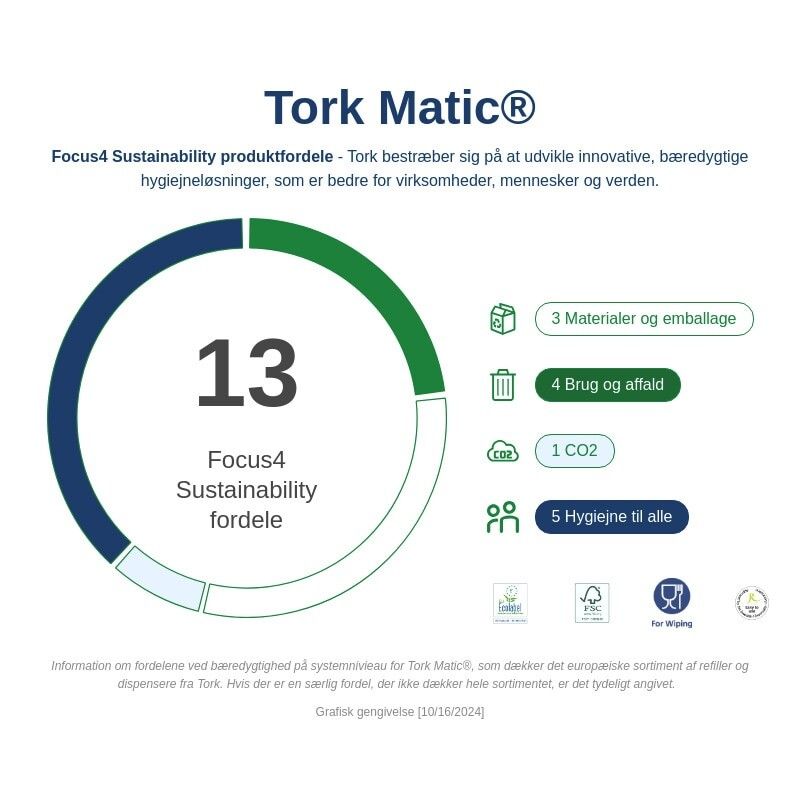 • Håndklædeark til en fornuftig pris klarer de basale behov for håndaftørring • Ekstra lang rulle: færre refills, sparer tid på vedligeholdelse • Én-ad-gangen dispenserfunktion reducerer forbruget og giver bedre hygiejne