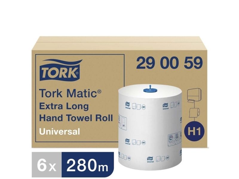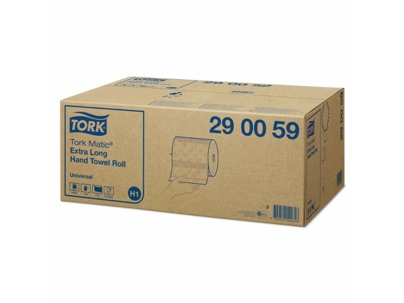 Tork Matic® Extra Long Håndklædeark på rulle med høj kapacitet, der er velegnet til travle toiletter f.eks. på skoler og i lufthavne. Rullerne er velegnede til Tork Matic® dispenser, som er designet til toiletter med mange brugere og sikrer nem vedligeholdelse.