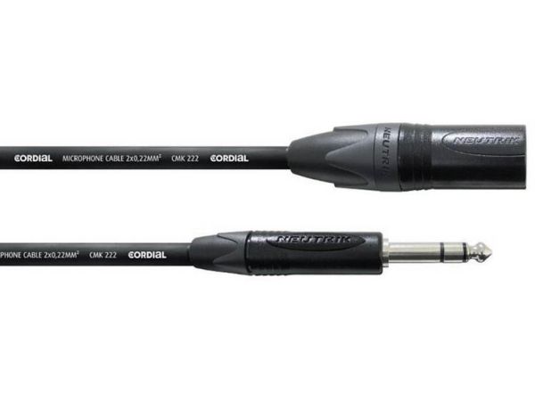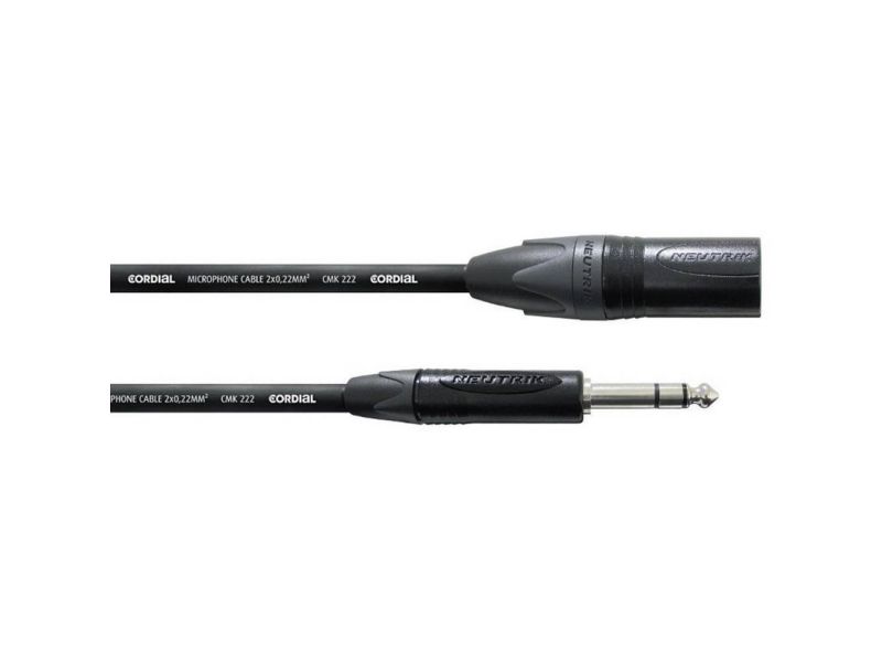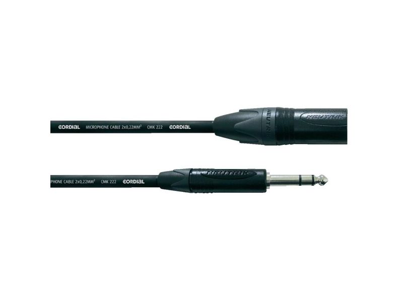 Længde: 2,5 m · Stik: Neutrik XX serie (6,3 mm stereo-jack Neutrik NP3x-bag - Neutrik XLR han NC3MMX-B) Kabellægning: Han/han · Kabel: Cordial CMK 222 sort Ledningstværsnit: 2x 0,22 qmm Skærm: Omsejling med blanke Cu-tråde. · Ledermodstand: 85 ohm/km. · Tilbehør: Velcrobånd.