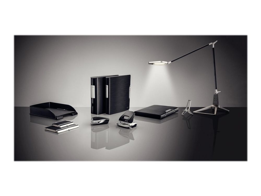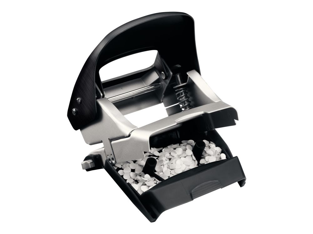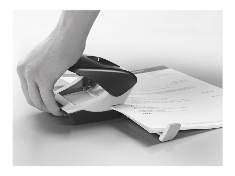Distinctive metal hole punch for everyday use, in a modern brushed surface design and sophisticated colour range: arctic white, garnet red, celadon green, titan blue and satin black. Robust and reliable. Patented grip zone and ultra sharp stamps reduce punching effort.