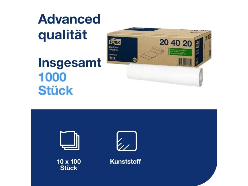 • 10 ruller, 100 poser hver, 20 L, Advanced kvalitet, passer til B2-dispensere.