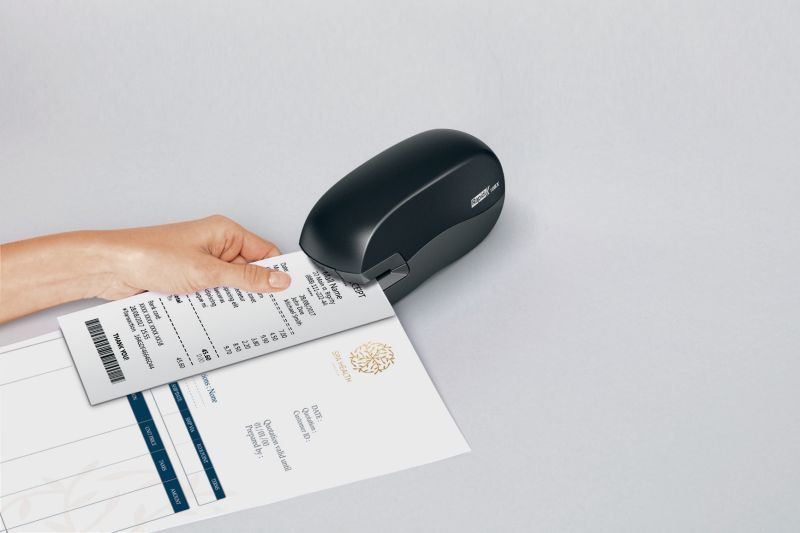 Kompakt og bærbar stiftemaskin som drives på batteri. Perfekt i kasseområde, resepsjoner og på skrivebordet. Enkel lading av stifter i front.