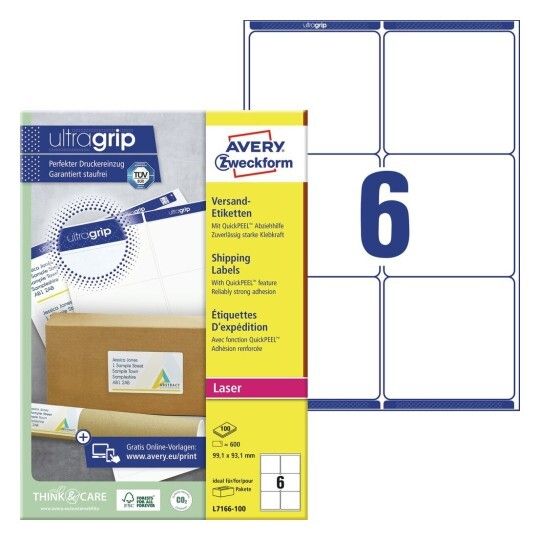 | • Særlig ideel til forsendelser i pakker, rør og kasser • QuickPEEL™ funktion for nem aftagning og påsætning • Med Ultragrip for præcis udskrivning uden papirstop • FSC® certificerede • Design og print nemt med GRATIS skabeloner |