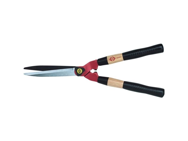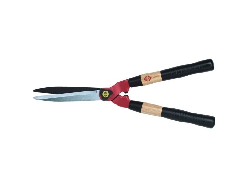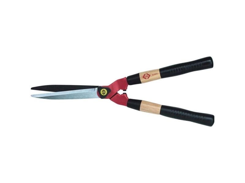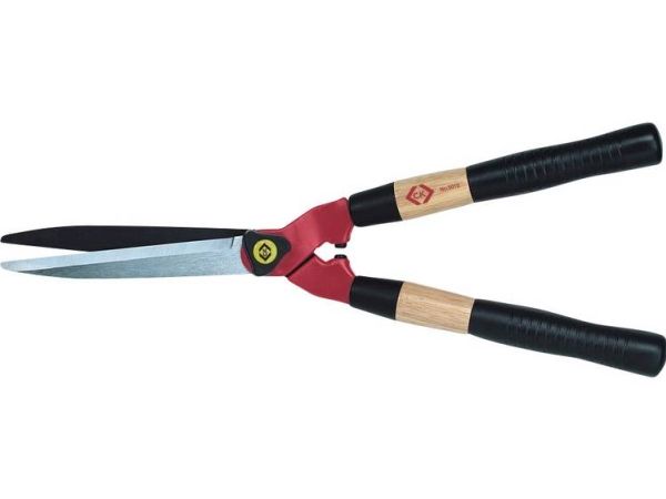 Hækkesaks med lige skær, greb af hårdt træ, slagdæmper, 180 mm skærelængde, 520 mm komplet længde.