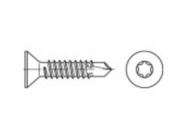 DIN7504 St.geh. Form P -isR galvaniseret bore skruer P, Blechschr. gevind undersænket ifølge DIN7982, Hexalobular dimensioner: P 5,5 x 25 T