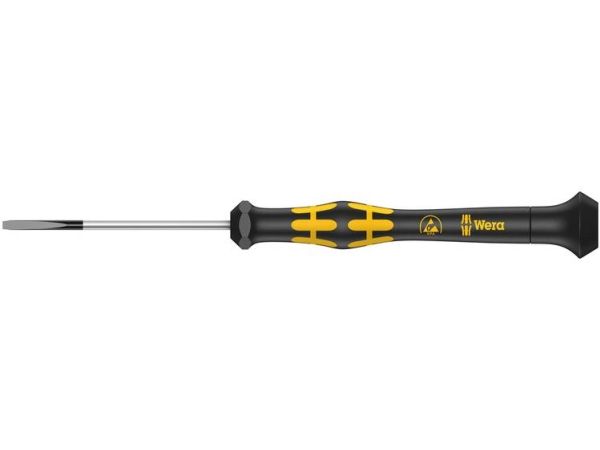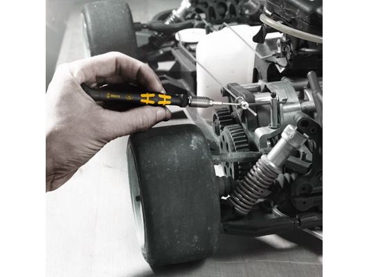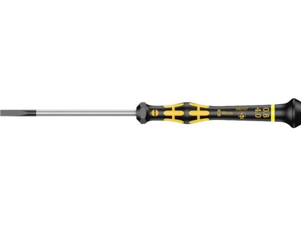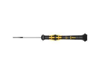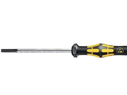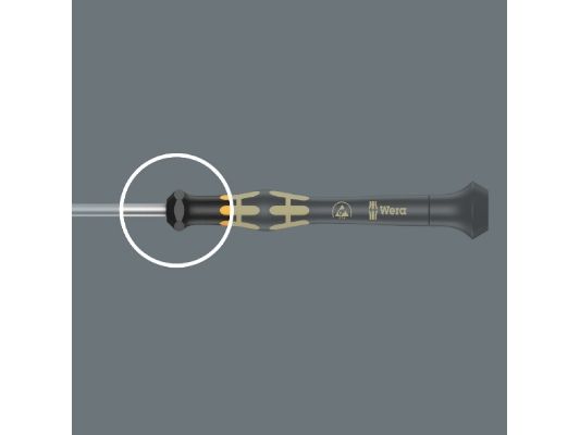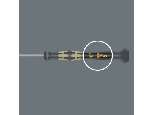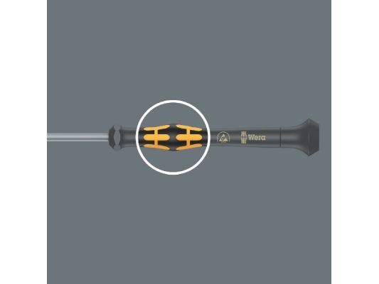 Elektrostatisk sikret Micro skruetrækker. Sikker beskyttelse mod elektrostatisk energi og dermed forbundne skader. Ved at støtte hånden på drejekappen og via hurtigtdrejezonen nedenfor drejekappen kan man snurre lynhurtigt rundt. Tidskrævende skiften tag bortfalder. Kraftzone med integrede bløde zoner sørger for overførslen af store løsnings- og spændingsmomenter. Præcisionzone til den rigtige drejevinkel ved justeringsarbejde. Black Point-spidsen giver præcision og optimeret korrosionsbeskyttelse.