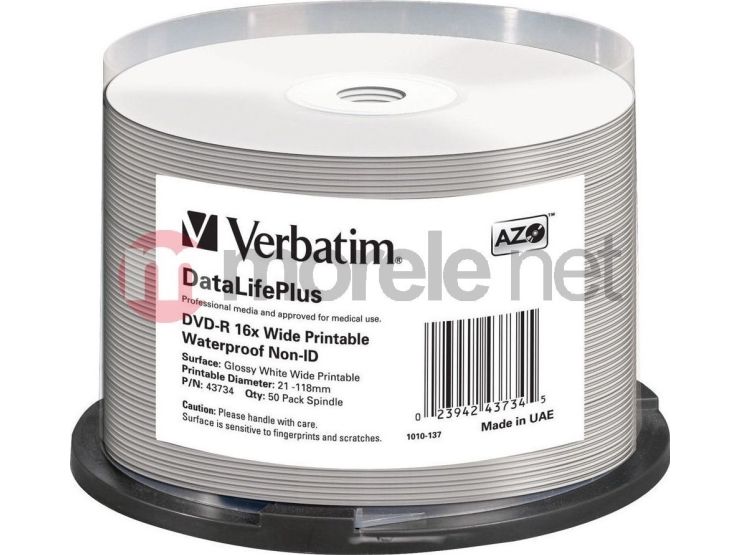 Verbatim DataLifePlus - 50 x DVD-R - 4.7 GB 16x - blekkstråleskrivbar overflate, bred skrivbar overflate - spindel