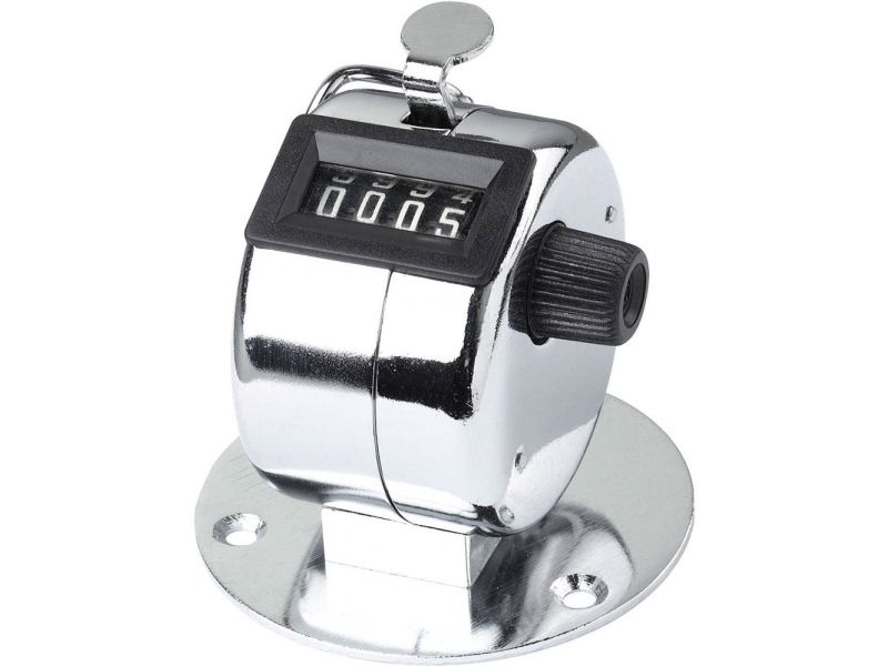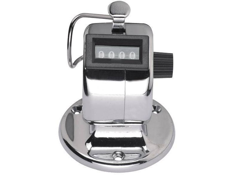 Med dette instrument kan enhver tælling, som registrering af bevægelser, stykgods, personer m.m. ske præcist. Handy forkromet metalhus. Med afskruelig fastgørelsesplade (dia. 53 mm) til montering på bord.