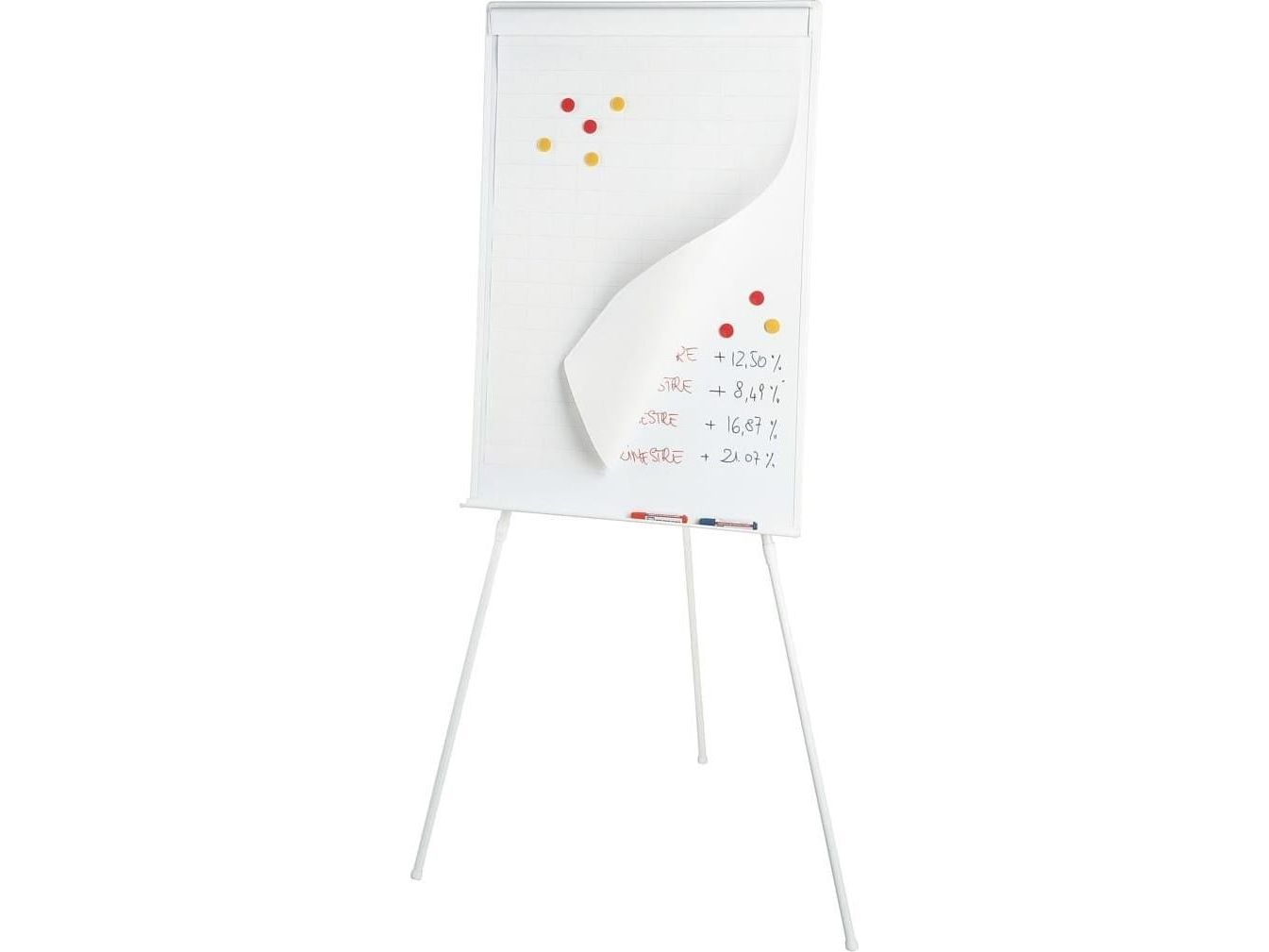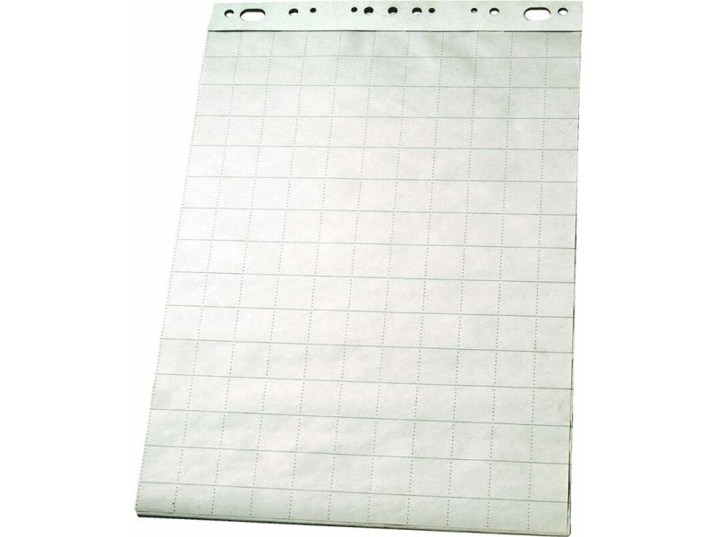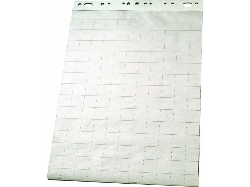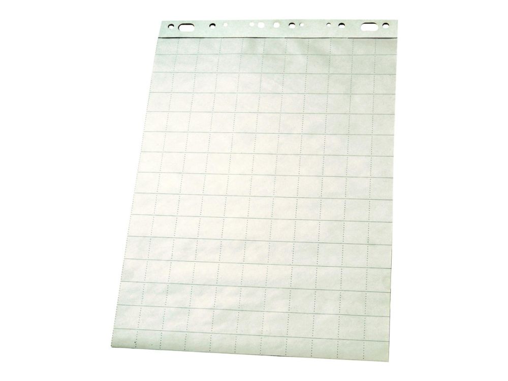 Flipoverblok fuld størrelse 65x95 cm, kvadreret på en side og blank på den anden, 50 ark 60 g TMP papir. Perforeret papir og universal ophængningssystem.
