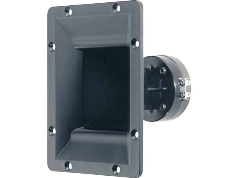 Visaton HTH 8.7 firkanthorn Professionelt firkantet horn i sort, slagfast kunststof med stærkt belastbar 25 mm svingspole. Egnet til diskantområdet fra 3000 Hz. Den akustisk hensigtsmæssige hornkonstruktion muliggør anvendelse fra 3 - 20 kHz. Ideelt til kompakte 2-/3-vejs bokse, til scenemonitorer og til sang- og instrumentalbokse. Belastbarhed RMS/maks. 200/300 W Frekvensområde 1500 - 20.000 Hz Indbygningsmål 195 x 155 mm