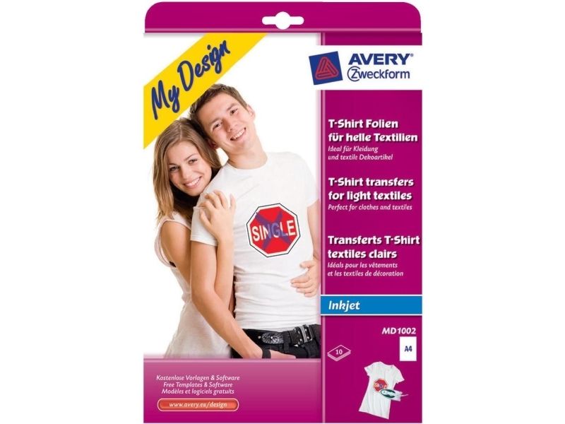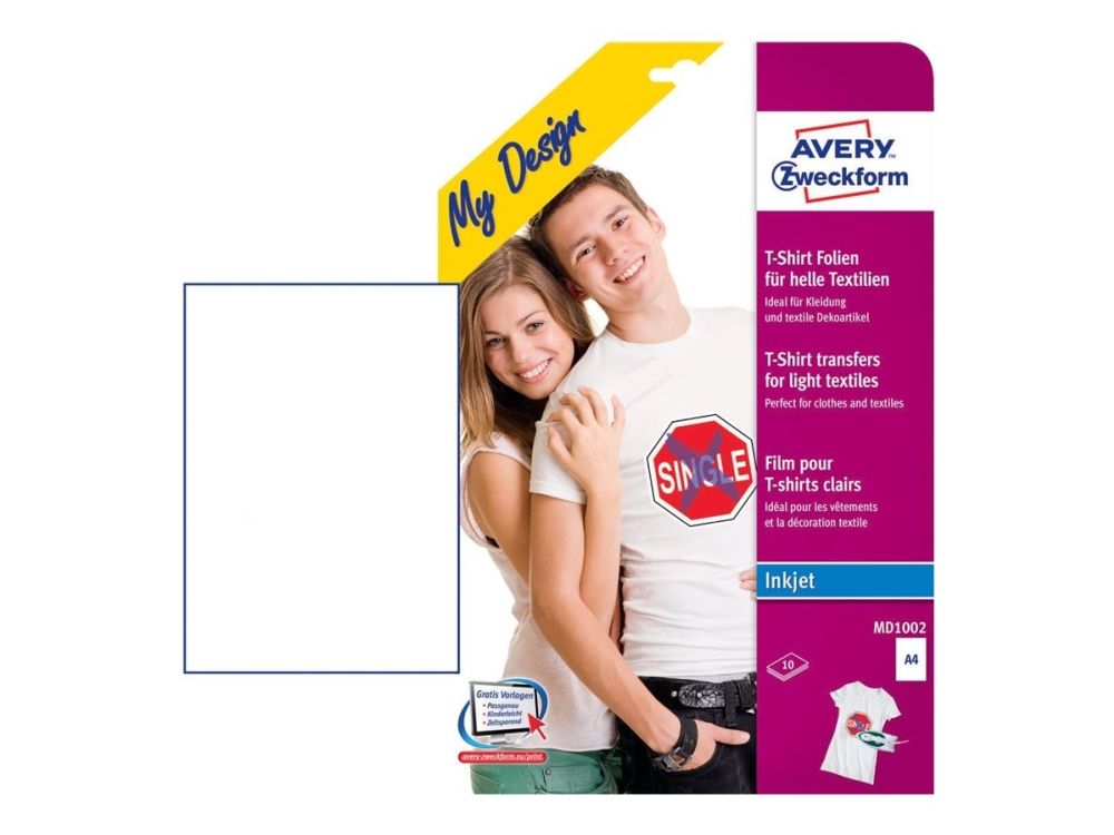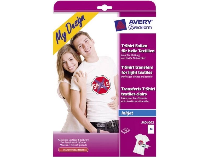 Avery Zweckform My Design Textilfolie für helle Textilien - A4 (210 x 297 mm) 10 ark påstrykningsbilder