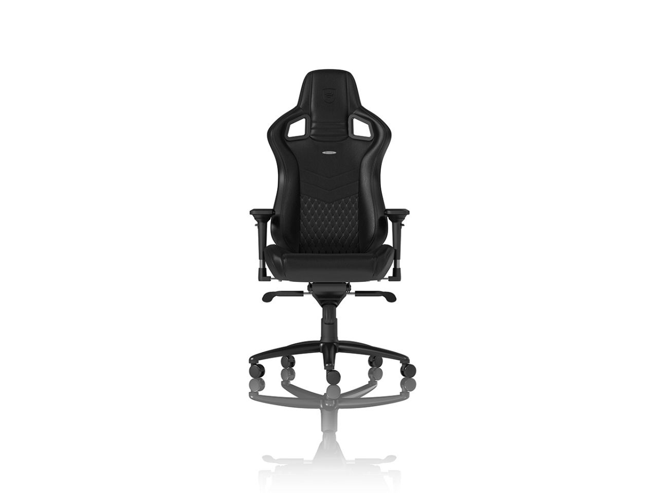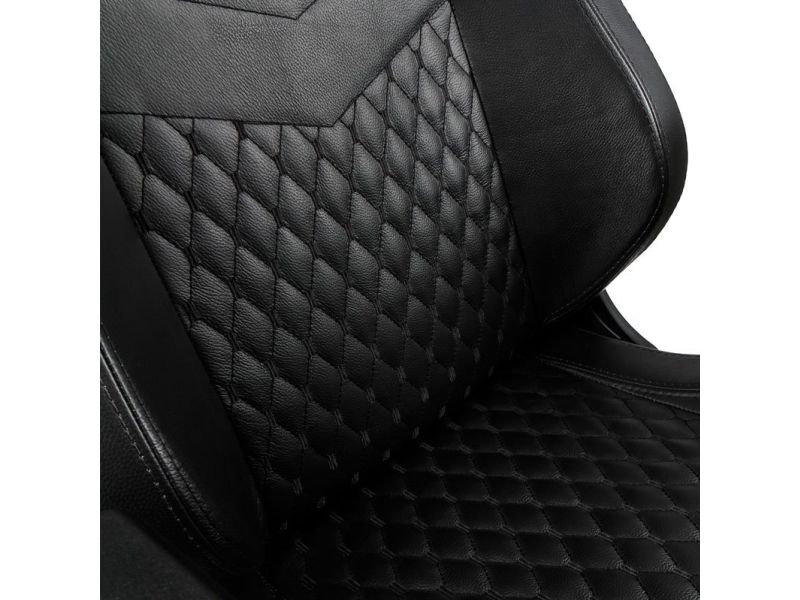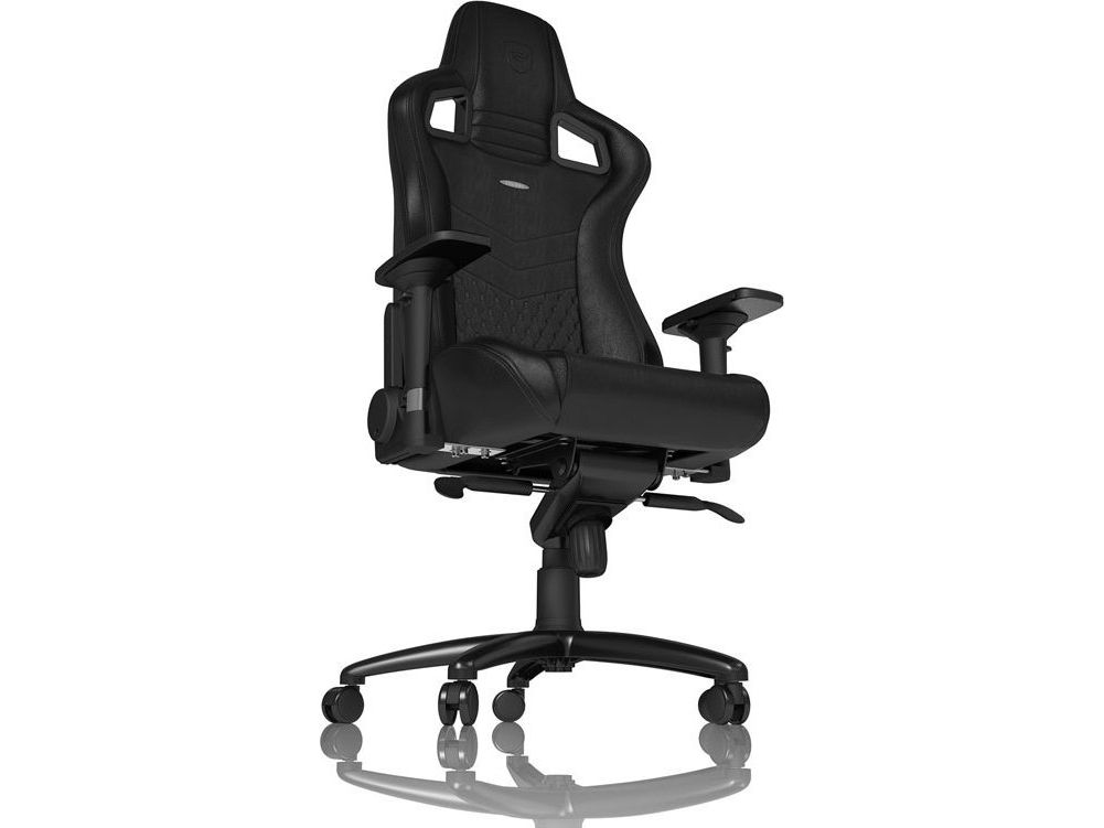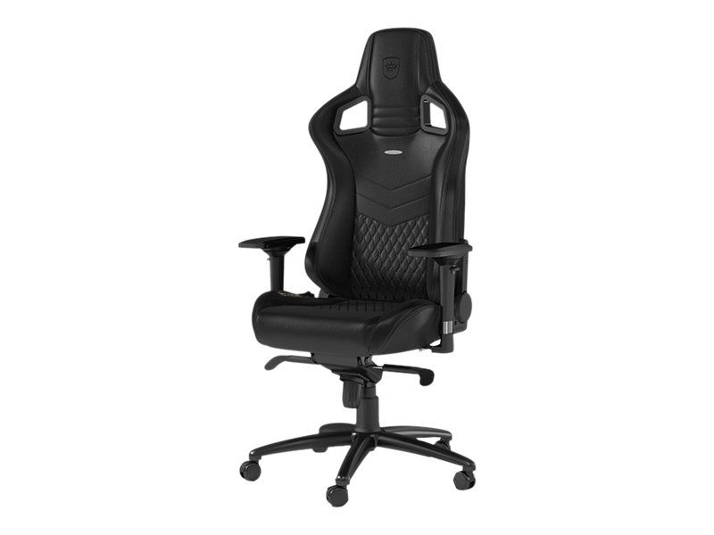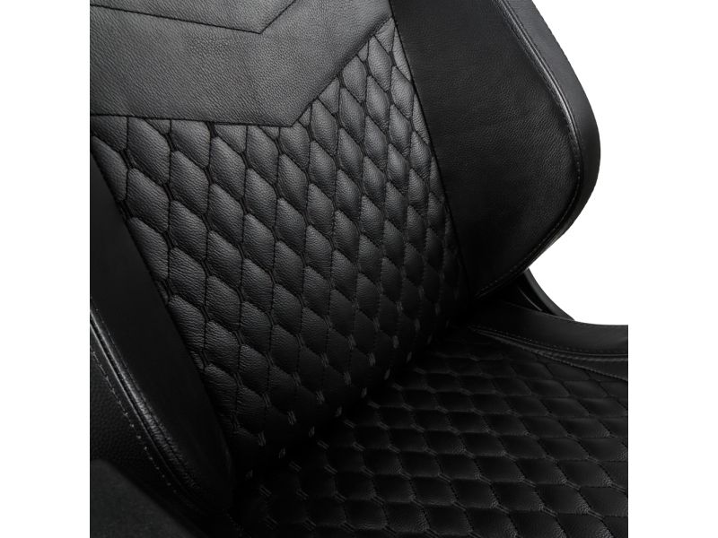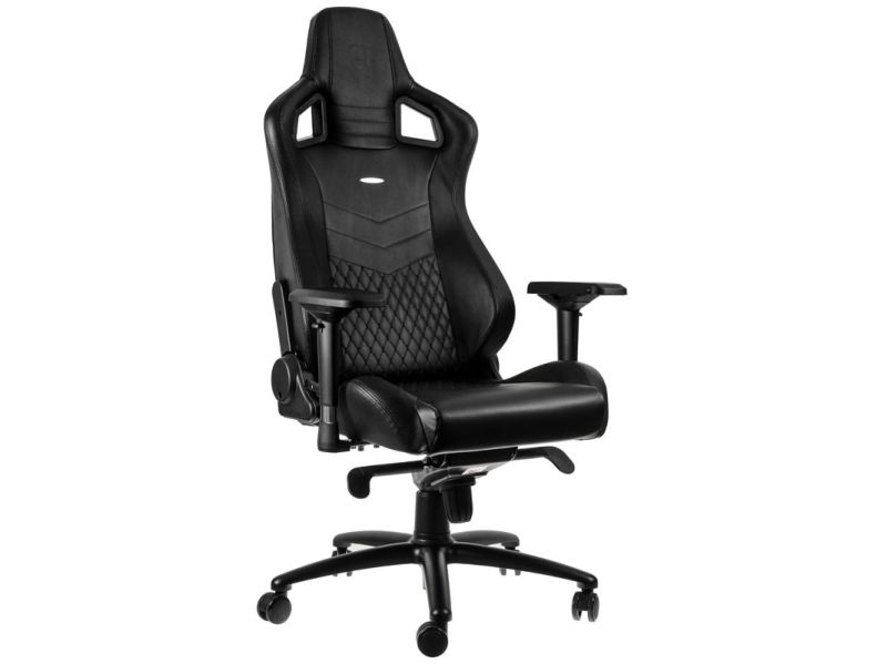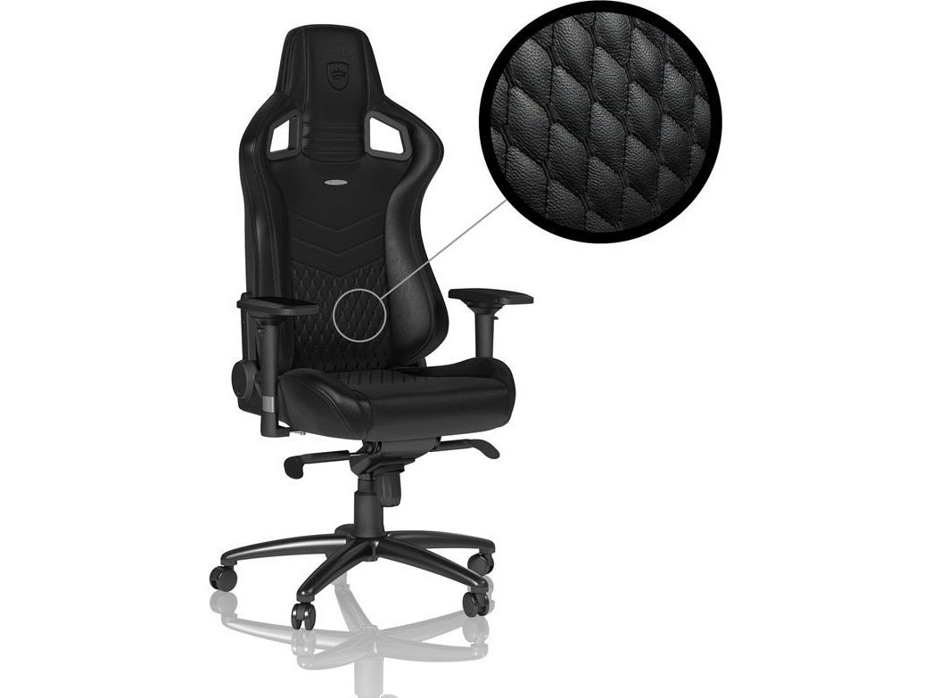 Like all “real leather” noblechairs, the noblechairs EPIC Real Leather Gaming Chair in black is an archetypal luxury office chair with a precious genuine leather covering across the entire seat and contact area. With this royal specimen of a truly ergonomic office chair, the entire chair shines in posh all-black leather. In the lumbar region and on the seating area, the delicate cover material is embroidered with a diamond pattern stitching, whose filigree elevations create tiny air pockets and therefore additionally contribute to an optimal aeration – also in high summer.