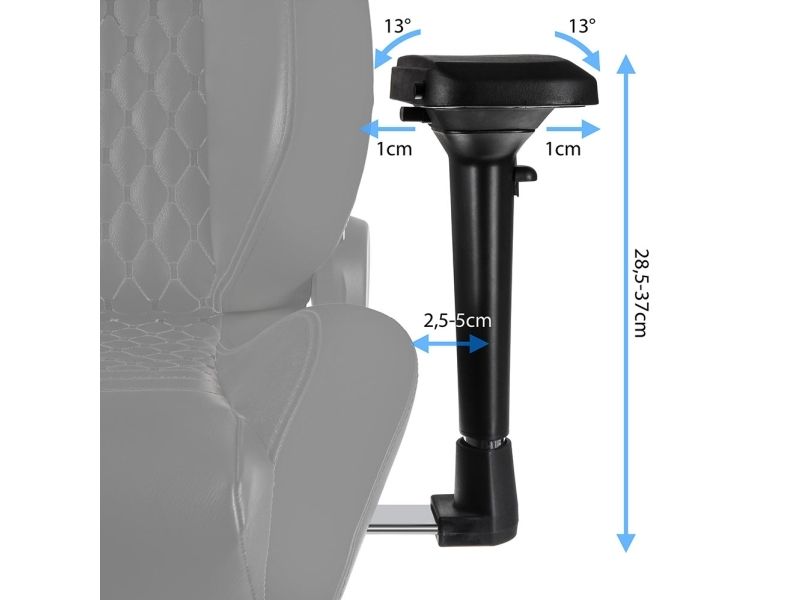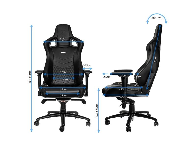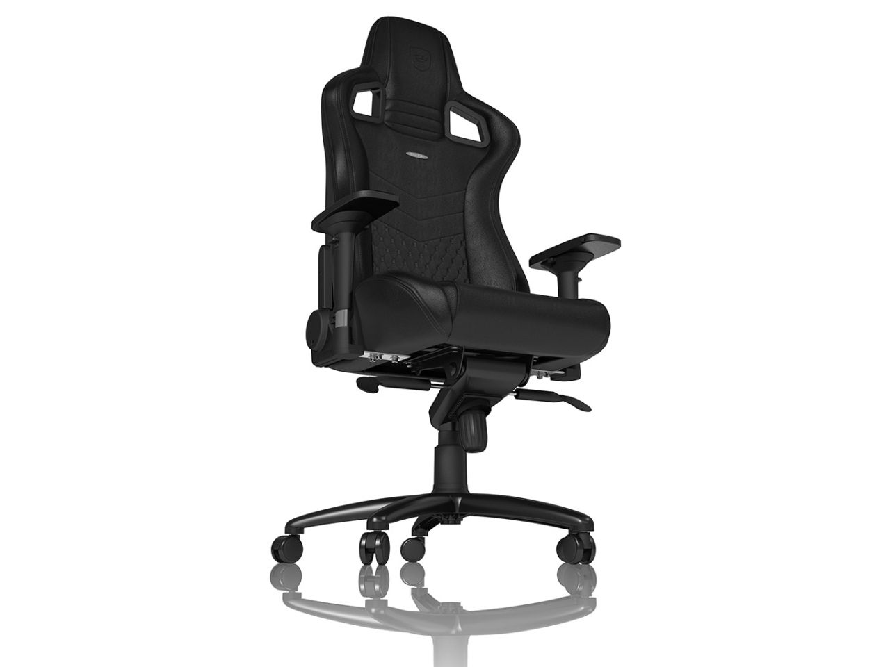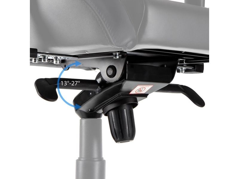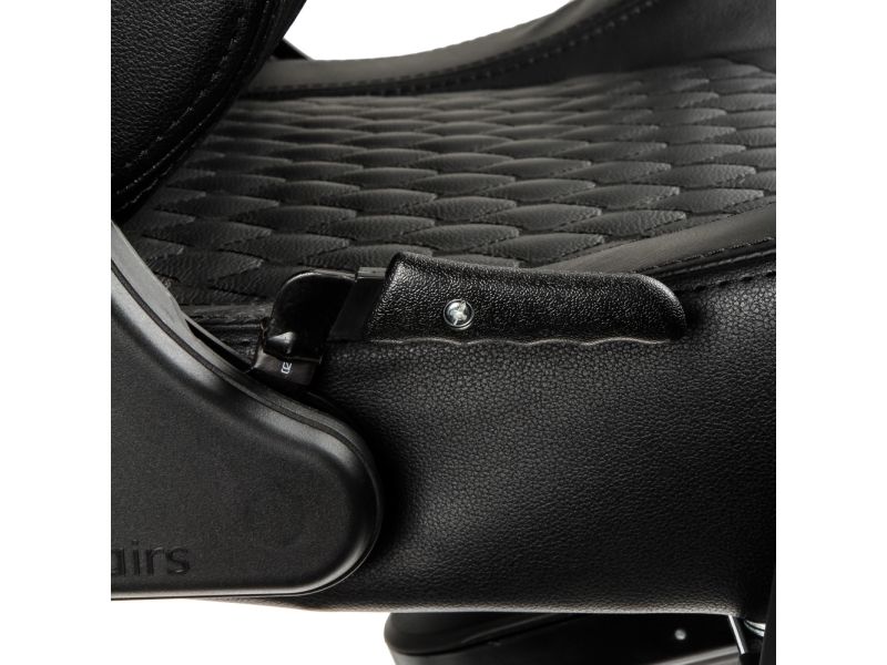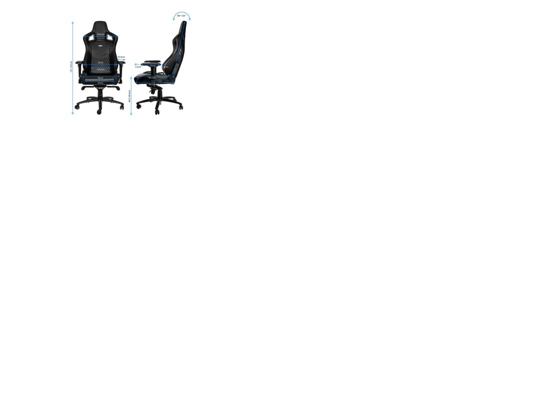 MAXIMUM ADAPTABILITY OF ALL COMPONENT PARTS All gamer chairs by noblechairs offer sovereign adjustment options in order to flexibly adapt this most pivotal piece of seating furniture’s qualities to individual requirements. Within the conical bore of the star base rests a height-adjustable safety class 4 gas lift that leads to a sophisticated rocking mechanism at the front edge beneath the seating area. Very comfortable sitting positions can be reached via the reclining function with its ever constant angle between backrest and seat area, that is facilitated by the rocking mechanism. The tilt positions can be locked and the tilt tension can be dynamically adjusted with a control knob at the bottom of the seat. Also the angle between backrest and seating area can be statically adjusted through a side lever. The feature set is perfected by 4D armrests, which are adjustable in four dimensions and made of pleasantly soft polyurethane.