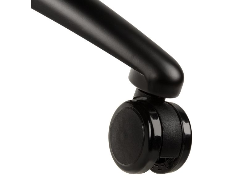 PU-COVERED CASTERS FOR EVERY SURFACE The 360-degree swivel chairs rest on a matte-black powder coated star base made of massive full aluminium with five arms. This five-star base is equipped with five large swivel casters (Ø 60 mm) with a nylon core, which are furnished with a polyurethane coating. With this, the chair casters are distinctly softer as well as more smoothly running and thus equally suited for hard floors and soft floors.