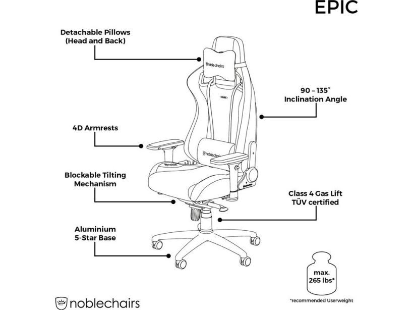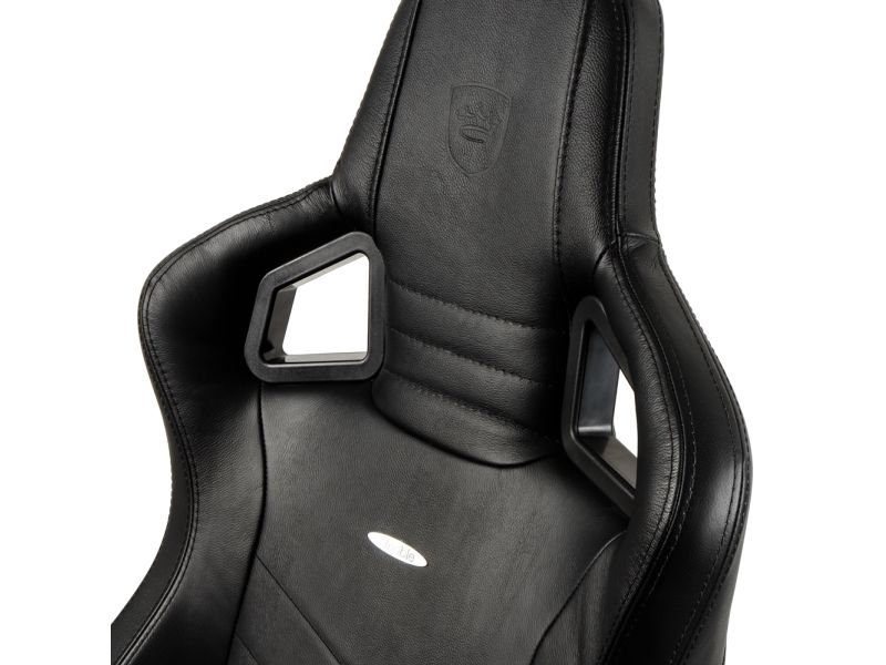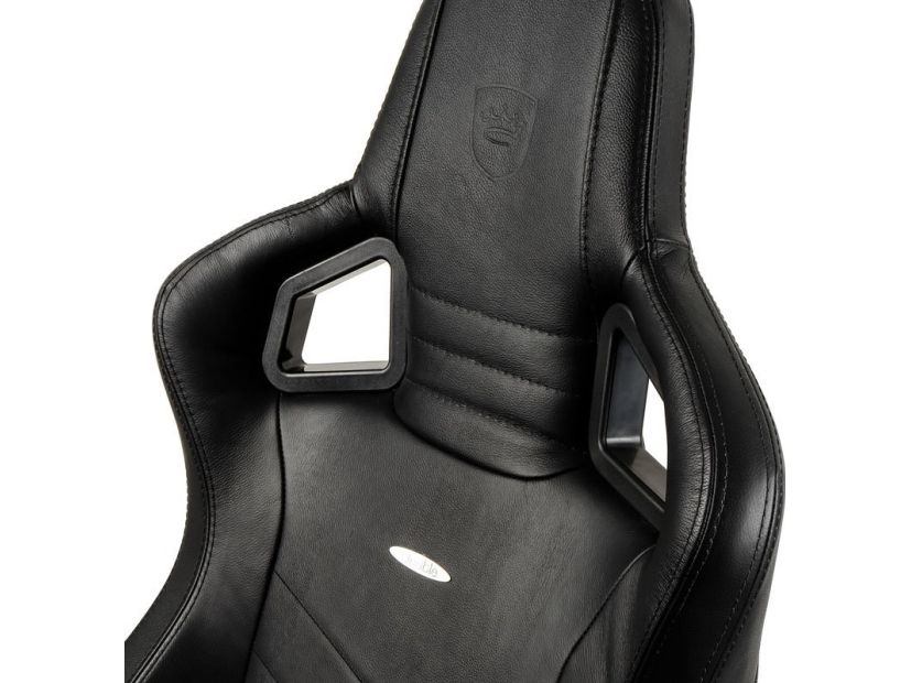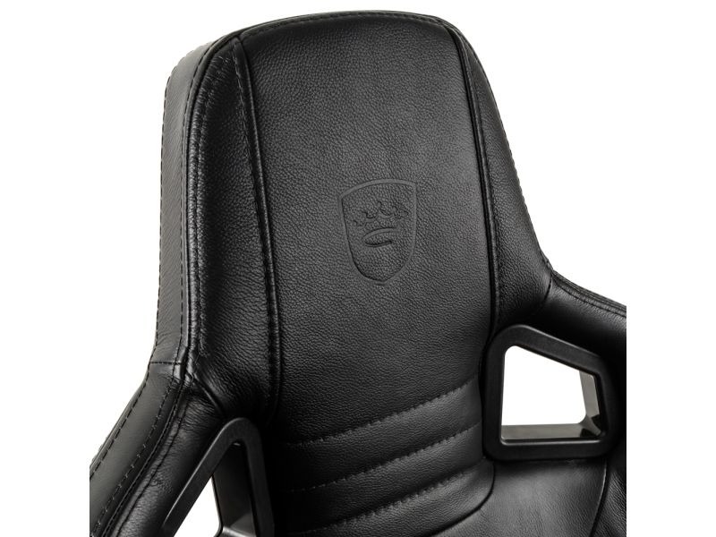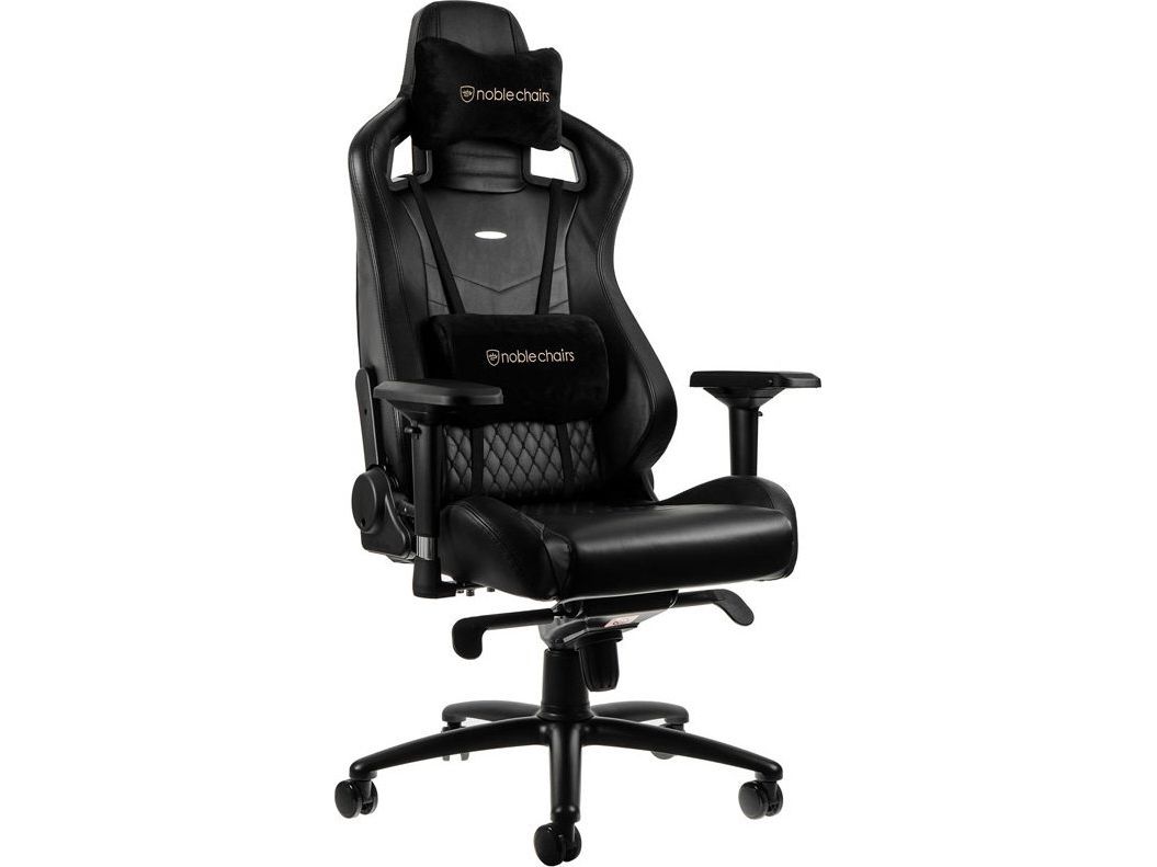 TWO PILLOWS IN MATCHING COLOURS INCLUDED To adequately support the neck area and lumbar region, two removable black pillows with a golden noblechairs logo embroidery come with the black noblechairs EPIC Real Leather Gaming Chair as well.