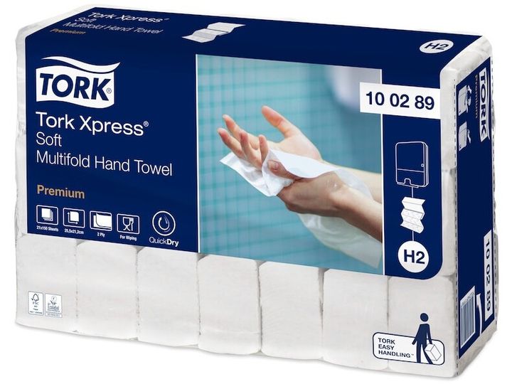 Giv dine gæster den bedste brugeroplevelse og komfort med de bløde Tork Xpress® Soft Multifold håndklædeark, som skåner hænderne og føles behagelige. Disse håndklædeark passer i Tork Xpress® Dispenser Multifold Håndklædeark til toiletter med middel brugerfrekvens. Den passer på steder, hvor pladsen er trang, og er bekvem og hygiejnisk for dine gæster.