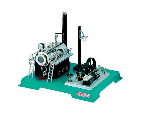 Med hensyn til farve er denne modelvariant en absolut innovation: den vandblå bundplade blev kombineret med et sort kedelhus og en sølvfarvet aggregatplade. Svinghjulet er malet sort. Teknologien til denne maskine afspejler en kombination af typerne D20 og D16, som er blevet suppleret med nogle tekniske subtiliteter. Yderligere tekniske detaljer om D18-dampmaskinen: Vandafløbsventil Fjederens sikkerhedsventil Dampfløjte med kædetalje Dampafbrydende håndhjulventil Dampjetolieolie Elegante, galvaniserede trykstøbte stænger Bundmål: 30 x 35 cm Højde: 32 cm Nettovægt: 2,5 kg Opvarmning: tørt brændstof Kedelvolumen: 530 ccm Den højpolerede og forniklede messingkedel har en kapacitet på 530 ccm og er udstyret med et nyt lille manometer (26 mm i diameter) og en forniklet manometerbase. Kondensatet drænes i en beholder skjult bag kedelhuset. Som et resultat ryger skorstenen naturligt. Aggregatpladen blev forlænget med en dynamo, der forsyner lykten i det bageste område, mellem kedel og aggregat, med kraft. Lykten er baseret på de industrielle lys fra århundredeskiftet og lyser svinghjulet, mens det er i drift.