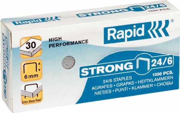 Rapid Strong - Stifter - 24/6 - 6 mm - galvanisert stål - pakke av 1000 - for Classic K2, K45; Economy E15, E26; Fashion F18; Fashion StandUP Ultimate NXT; Supreme S1