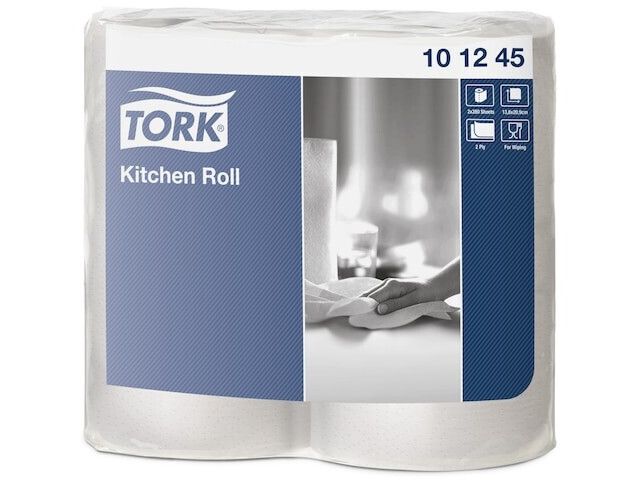 Tork Køkkenrulle er velegnet til aftørringsopgaver i hverdagen, som fx aftørring af overflader, vand og olie eller opsamling af madrester.