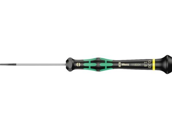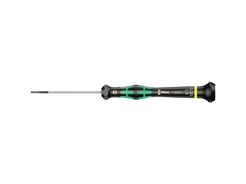 High quality Wera Micro screwdriver for precision mechanical jobs. Rapid twisting results from fixing the hand on the head and using the fast-turning zone just below. This makes time-consuming grip adjustments unnecessary. Power zones with integrated soft sections ensure the transfer of high loosening and tightening torque; a precision zone for the right rotation angle during fine adjustment work. The Black Point tip offers optimised corrosion protection and an exact fit.