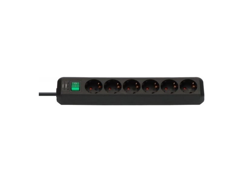 brennenstuhl Eco-Line - Flerkoplingslist - utgangskontakter: 6 - 3 m kabel - svart
