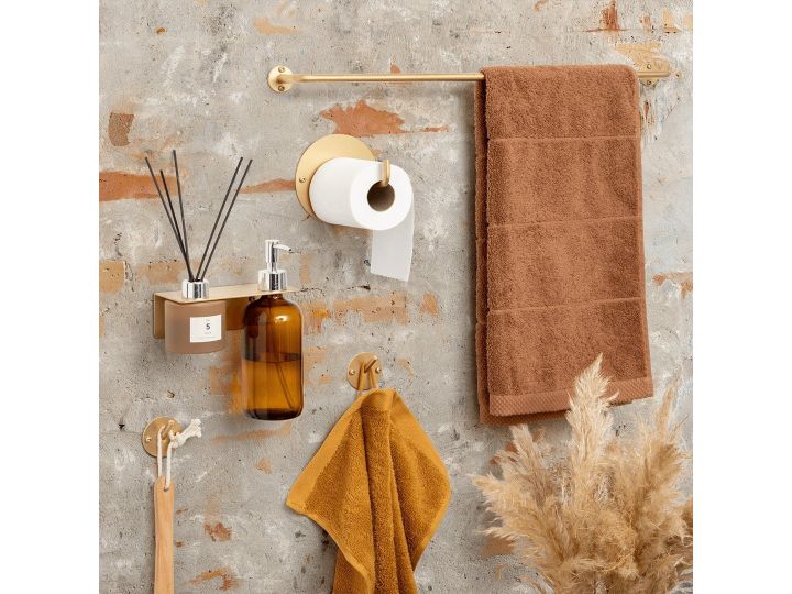 Håndklædestangen er en praktisk og stilfuld løsning til opbevaring af håndklæder på badeværelset eller viskestykker i køkkenet. Guld s-kroge kan tilkøbes for ekstra opbevaringsmuligheder til alt fra badeværelsestilbehør til grydelapper og køkkenredskaber.