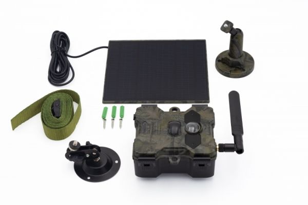 Solar panel, USB-strømkabel (1 m), antenne, spindel, 2 braketter, monteringsbelte