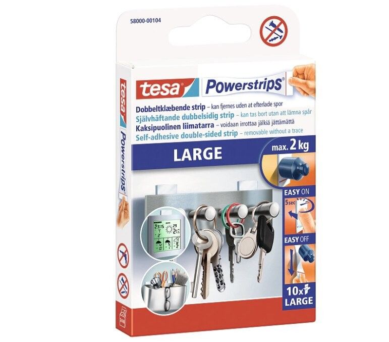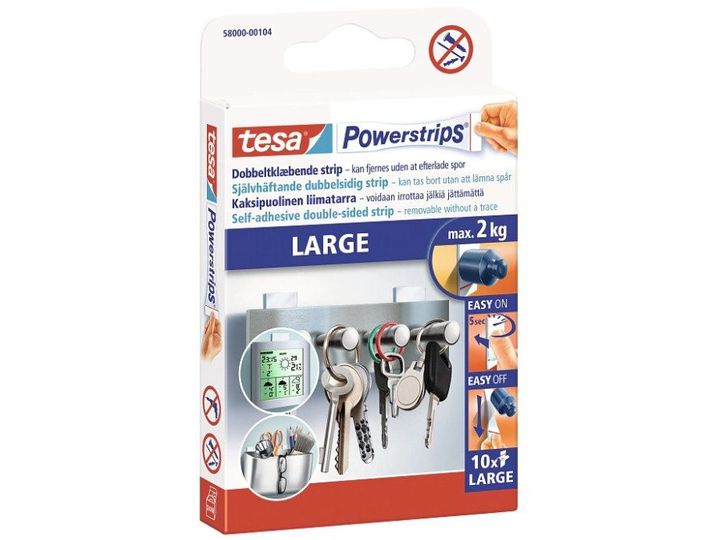 tesa® Powerstrips Large - med 10 stk.