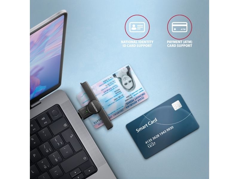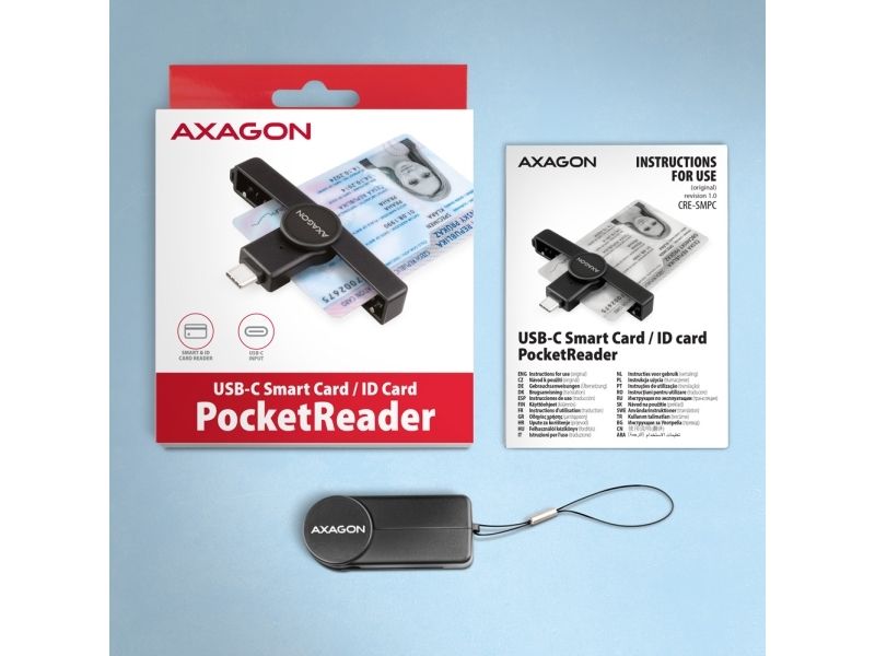 The AXAGON CRE-SMPC is a versatile SMART card reader designed to meet the needs of modern users requiring a reliable input adapter. This USB-C powered device is equipped with contact smart card reading technology, ideal for secure access and authentication. Its Plug-and-Play functionality ensures a hassle-free setup and compatibility with various smart card standards, including FIPS 201 and EMV 4.1, making it a practical choice for both personal and professional use. The included key hinge accessory adds convenience for carrying or securing the device as needed.