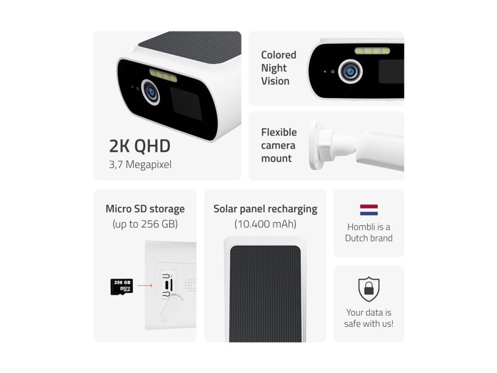 Hombli Solar Cam - Nettverksovervåkingskamera - kule - utendørs - vanntett - farge (Dag og natt) - 3,7 MP - 2560 x 1440 - 2K - lyd - Wi-Fi - 2.4GHz radio - H.265, H.264