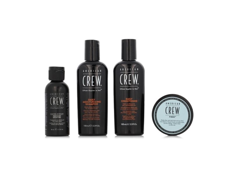 American Crew Essential Set American Crew: Daily, Hair Conditioner, For Moisturizing, 100 ml + Daily, Hair Shampoo, For Hydration, 100 ml + Fiber, Hair Styling Pomade, For Styling, Strong Hold, 50 ml + Precision, Soothing, Shaving Gel, 50 ml For Men