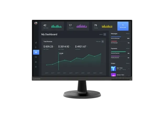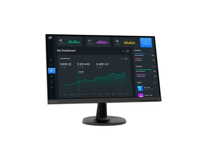 The Lenovo C24-40 Monitor is designed to power your work during the day and your playground at night. The 23.8-inch 3-side NearEdgeless VA panel readily engages you with rich onscreen content and its wide 178°/178° viewing angle lets you experience consistent imagery from any perspective. The FHD (1920 x 1080) resolution and 72% NTSC color gamut make the display pop. A highly responsive display with a 75Hz refresh rate and 5ms response time, lets you experience the richness of smooth video content. Be on the edge of the action as the screen pulls off fast-moving scenes with amazing ease, thanks to AMD FreeSync technology which removes stutters and tears. The monitor's TÜV Low Blue Light certification and Natural Low Blue Light technology shield your eyes by filtering out harmful blue light emissions. It does so while keeping the images true to their original colors without any distortion or color saturation. You can complete your setup by connecting your monitor to your laptop/PC and speakers/headphones with the HDMI, VGA, and audio-out ports. Adjust your monitor for your optimal comfort and viewing experience with the tilt functions or VESA Mount it to have a neat and clean desk space. Work and play with more elbow room as the integrated cable management system ensures that wires don't come in the way of your productivity. The Lenovo C24-40 Monitor is the multitasker you have been waiting for!