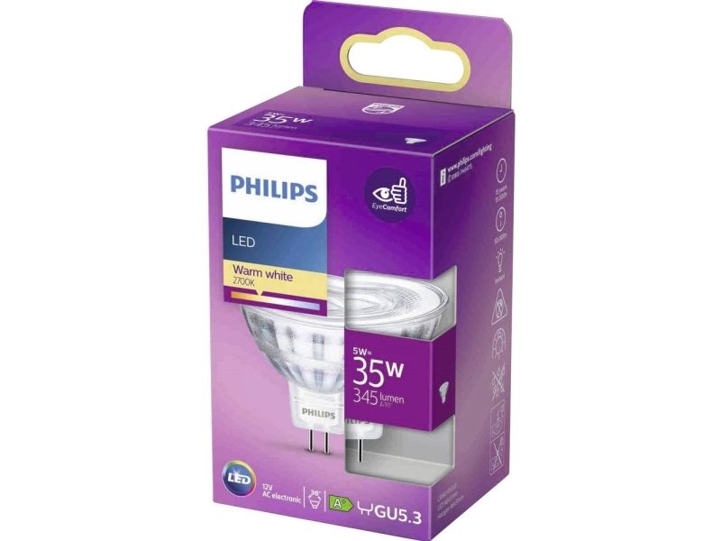 Philips - LED-pære for søkelys - form: MR16 - GU5.3 - 4.4 W (ekvivalent 35 W) - klasse F - varmt hvitt lys - 2700 K