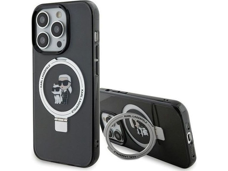 Apple iPhone 15 Pro Karl Lagerfeld dėklas Ring Stand Karl&Choupettte MagSafe (Klhmp15lhmrskck) juodos spalvos