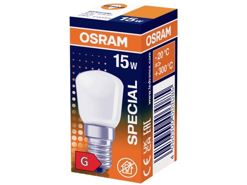 Osram Køleskabslampe E14 15W varm hvid speciel form
