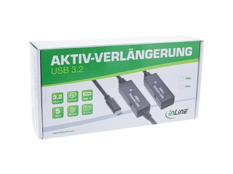 InLine 35656C, 15 m, USB C, USB C, USB 3.2 Gen 1 (3.1 Gen 1), 5 Gbit/s, Sort
