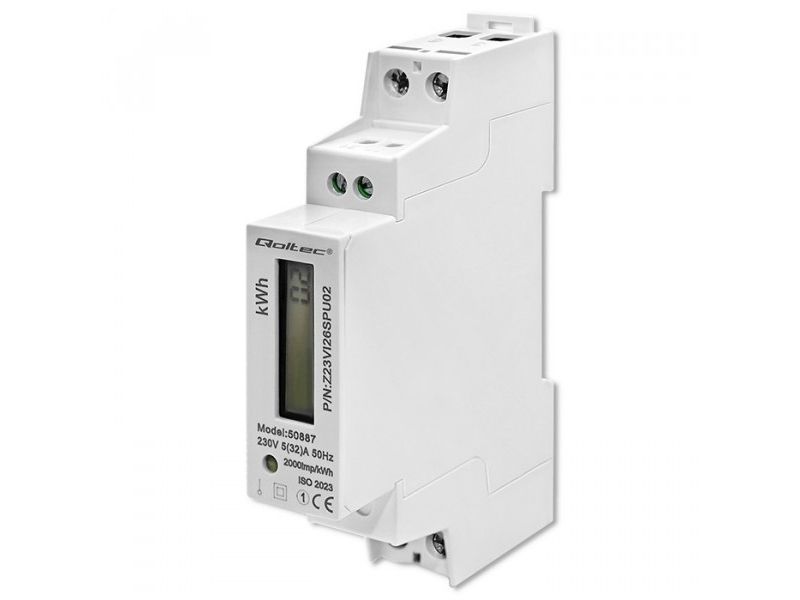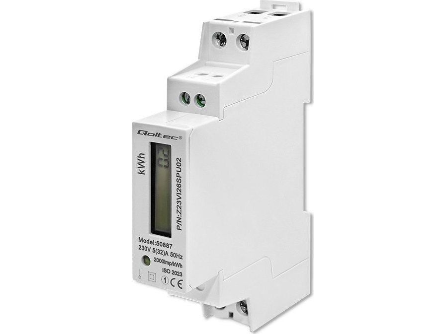 Qoltec Enfase elektronisk teller | energiforbruksmåler for DIN-skinne | 230V | LCD | 1P | Slank