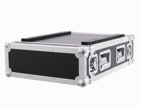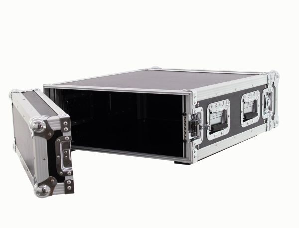 Forstærkerrack PR-2ST, 4HE, 57 cm dyb Professionel Flightcase til apparater på 483 mm (19) · rackskinner med 4 HE monteringsmulighed til apparater på 483 mm (19), som sluttrin, lyssluttrin, ekstra apparater · rackskinner foran og bagved · 2 aftagelige låg (Double-Door-version) · maks. Indbygningsdybde 550 mm (plus 90 mm pr. låg) · eksklusiv forarbejdning med 7 mm flerlagslimtræ, sort lamineret · aluminiumprofilramme (30 mm) med afrundede hjørner · trebenede, mellemstore stålkuglehjørner · 4 eksklusive Butterfly-låse (uden spærrefunktion) · 2 glideskinner af træ i bunden · 4 forkromede case-klapgreb · levering med monteringsskruer · kan fås i forskellige højdeenheder (1 HE = 44 mm)