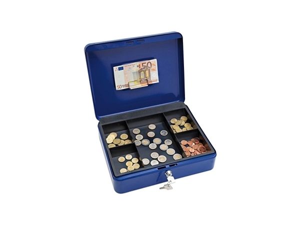 WEDO kontantkasse med klips, blå (B)300 x (D)240 x (H)90 mm svart, 5 innstikksrom, klips: festet på innsiden av lokket (145 403H)