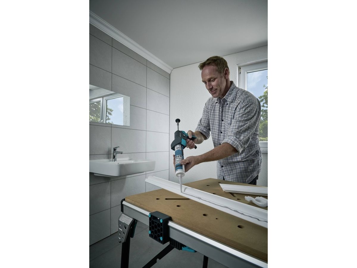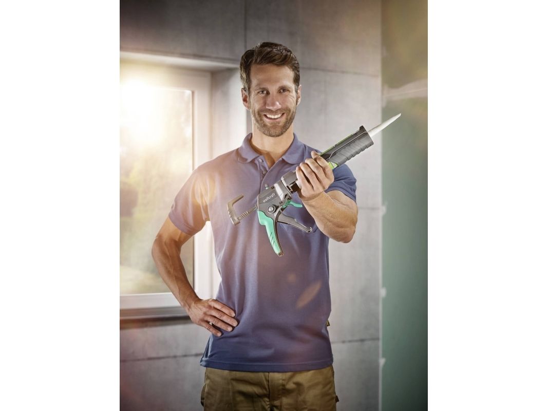Patronpresse mg 310 Compact Let og kompakt - passer i selv den mindste værktøjskasse · praktisk quick release-optagelse til 310 ml-patroner, for eksempel Lim, silikone og akryl · automatisk dryp-stop-funktion forhindrer efterløb. Ultrakompakt og meget hurtigt klar til brug - i henhold til denne bestemmelse er mg 310 Compact udviklet, som med en udpresningsudskrivning på 160 kg er ideal ideel til forarbejdning af silikone, akryl og lim. Med sin pladsbesparende konstruktion passer den i den mindste skuffe eller værktøjskasse. Via holder til hurtig udskiftning kan patronen låses tidsbesparende med et enkelt klik. Alligevel kan patronen drejes, så du på fleksibel vis kan justere arbejdsvinklen ved fugen eller påklæbning. Ved fravænning forhindrer det automatiske drypstop utilsigtet opløb af materialet - for rene resultater ved enhver anvendelse.