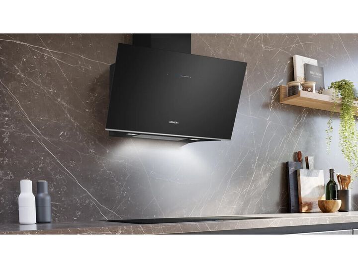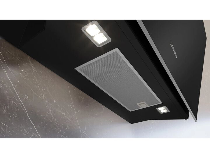 Siemens LC91KLT60. Maximum extraction power: 1007 m³/h, Type of extraction: Ducted/Recirculating, Fluid dynamic efficiency class: A. Product colour: Black. Grease filter type: Stainless steel. Bulb power: 3 W, Number of bulbs: 2 bulb(s), Bulb type: LED. Energy efficiency class: A+, Annual energy consumption: 39.1 kWh, Energy efficiency scale: A+++ to D