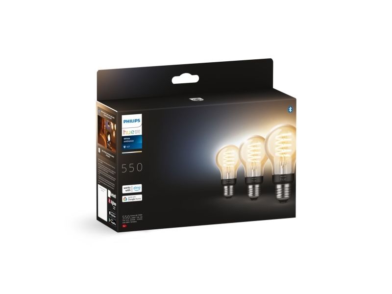 Philips Hue White ambiance 550 - LED-filamentlyspære - form: A60 - E27 - 7 W - varm til kjølig hvitt lys - 2200-4500 K (en pakke 3)