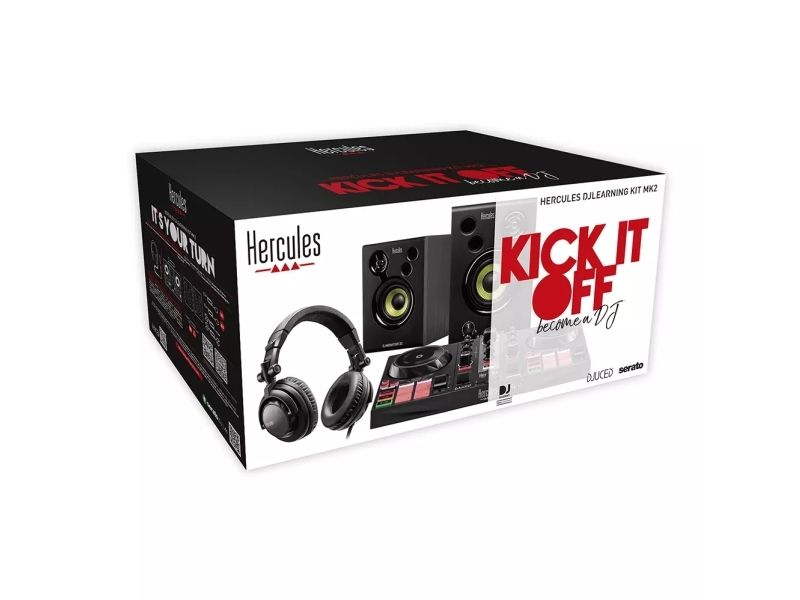 EVERYTHING IS INCLUDED No need for extra cables: USB and audio cables are included in the box No upgrade required: the full version of DJUCED®, featuring video content and sample packs, is already includedHercules DJLearning Kit. Headphone connectivity: 3.5 mm