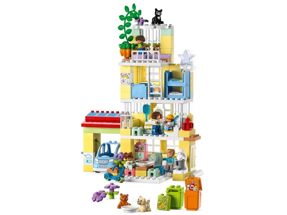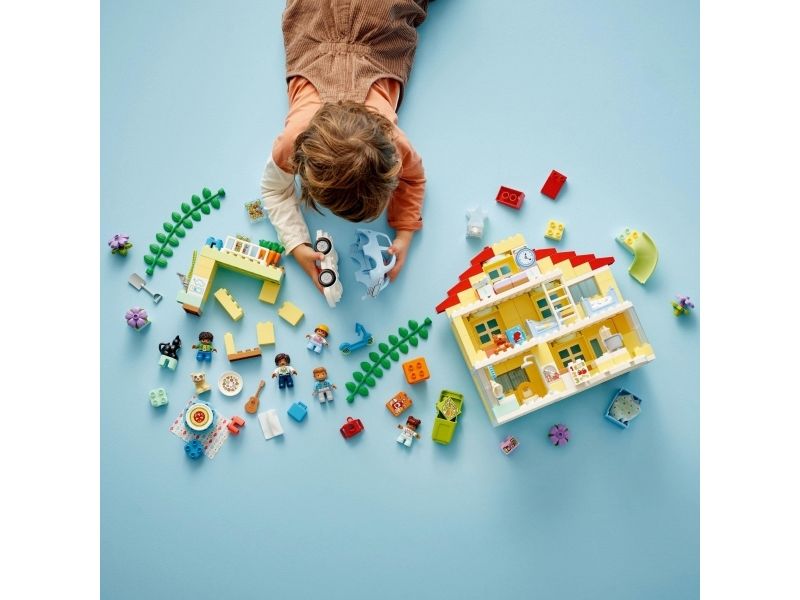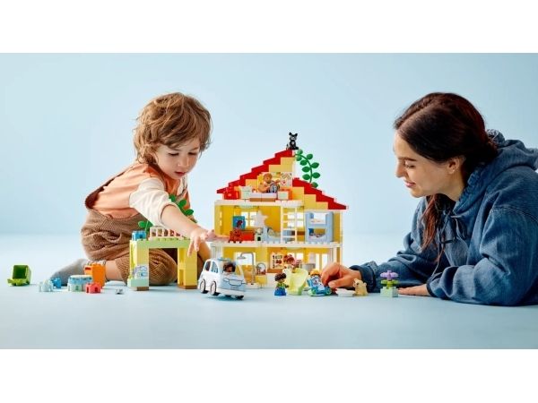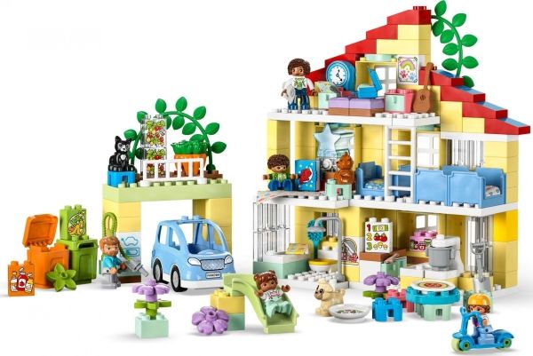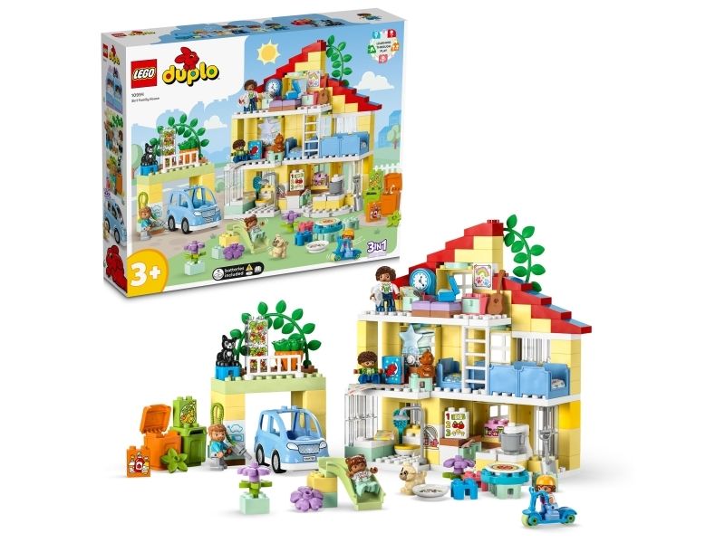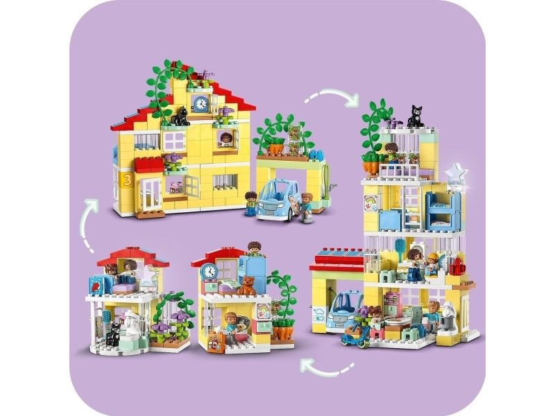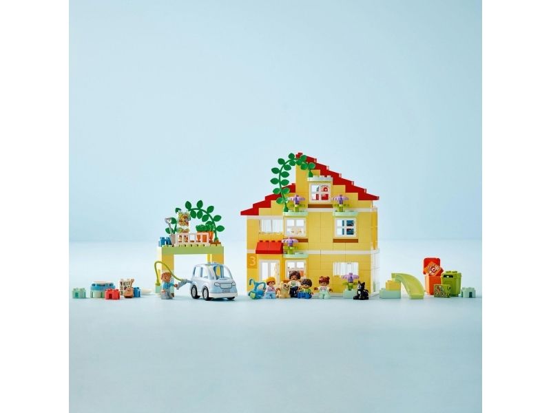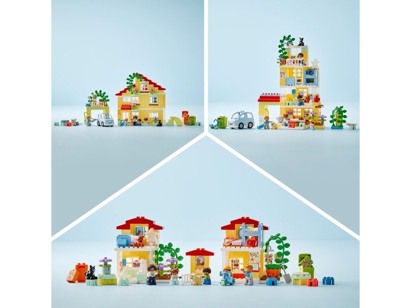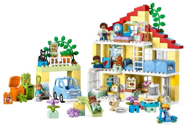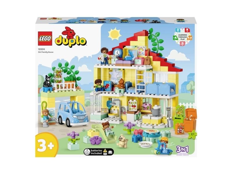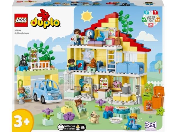 Velkommen til LEGO® DUPLO® Town 3-i-1 Familiehjem (10994), hvor barn kan utforske en hel verden av læring. Huset er fullt av autentiske detaljer og gir foreldre og barn fra to år muligheten til å iscenesette koselige øyeblikk i familien. Med sju figurer kan barn uttrykke seg fritt og foreldre lære barn om sosiale koder.
