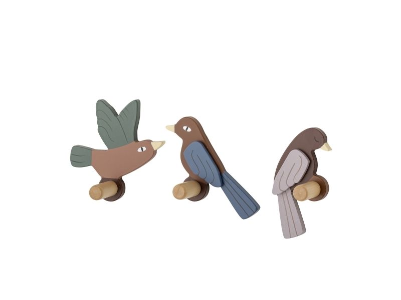 Lewi Knagen fra Bloomingville MINI er et sæt af 3 søde knager med forskellige fugle i afdæmpede farver. Hæng dem op på børneværelset eller i entréen, så der altid er en krog, i den rette højde, til børnenes jakker og tasker.