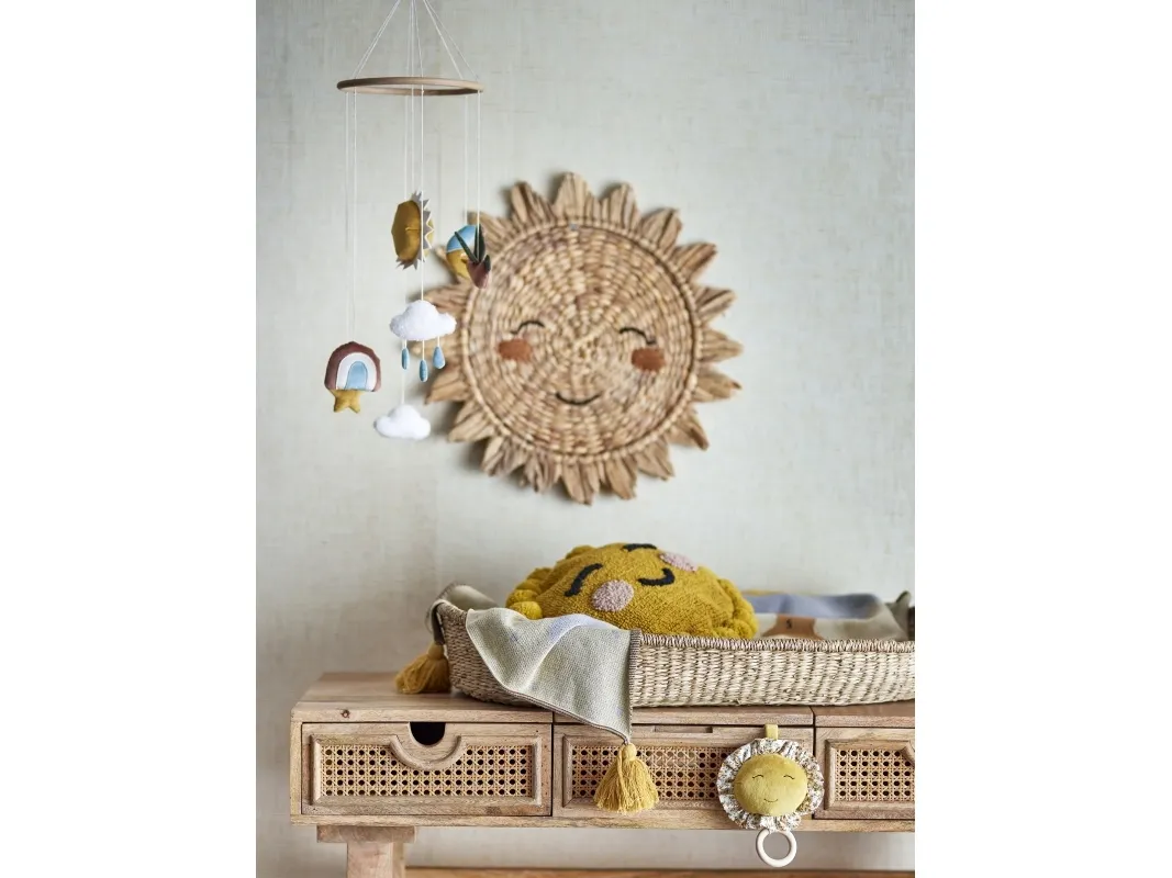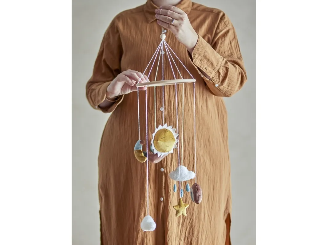 Vigge Uroen fra Bloomingville MINI er en fin uro der passer perfekt over puslebordet eller tremmesengen. De søde himmelfigurer, som sol og måne, er lavet af bløde materialer, som gør uroen super hyggelig og dekorativ i rummet.