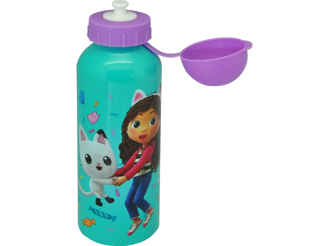 Opdag Gabby's Dollhouse vandflaske! Denne lette og holdbare aluminiumsflaske på 500 ml er perfekt til små eventyrere. Med farverige motiver fra Gabby's magiske verden, holder den drikkevarer kolde og sjove hele dagen. Ideel til skole, legeplads eller udflugter!