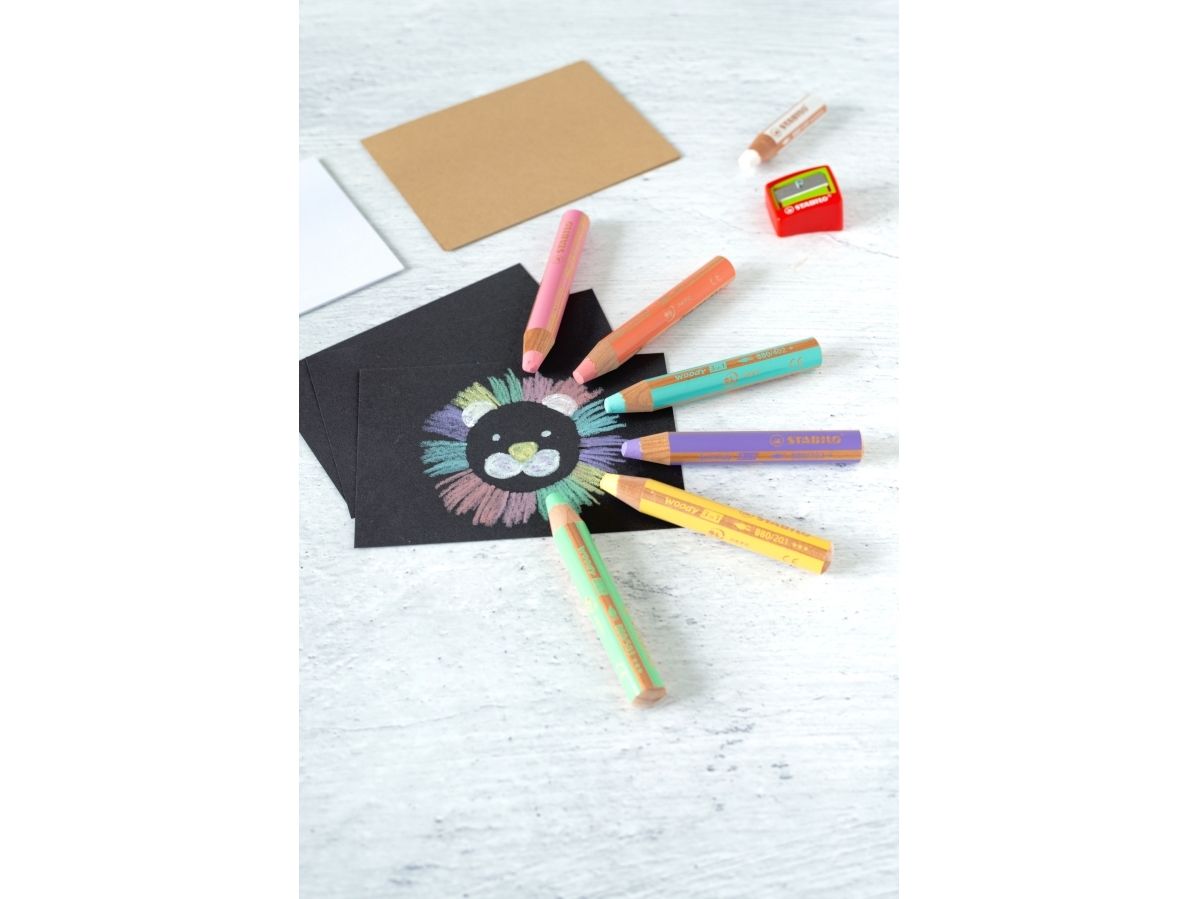 Stabilo Woody 3i1 Pastel colored pencil - watersolouble 6pcs + sharpener