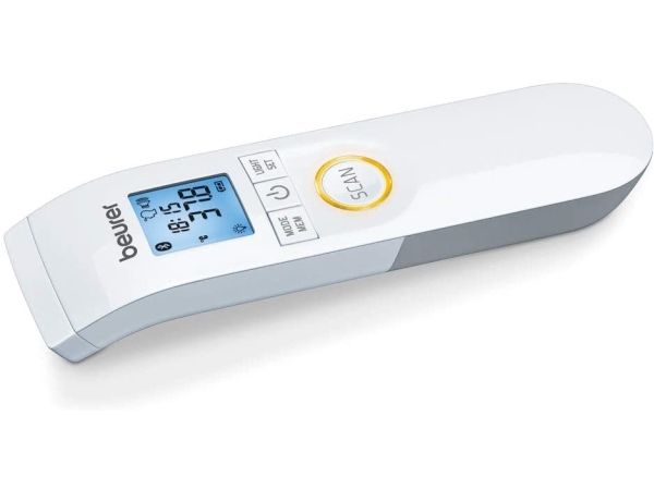 Beurer FT 95 Kontaktfrit Termometer med Bluetooth er et multifunktionelt termometer der kan måle kropstemperaturen helt uden berøring! Gennem infrarød måling, kan FT 95 måle pandetemperaturen på 2-3 cm afstand. Termometret kan desuden måle overfladetemperatur, som kommer til nytte, når temperaturen af fx. babymad skal måles.